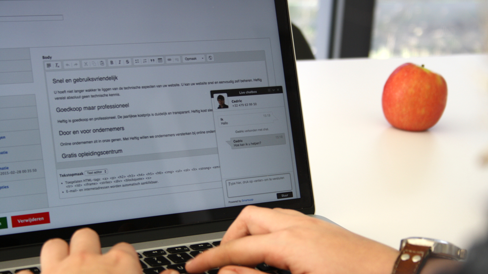 De snelste manier om klanten efficiënt te ondersteunen is via chat. Als je inlogt op een website van Heftig zie je vanaf nu een chatbox. Heb je een vraag of wil je je mening kwijt, dan is chatten de ideale manier. Wij zorgen ervoor dat je zo snel mogelijk een antwoord krijgt op al je vragen.